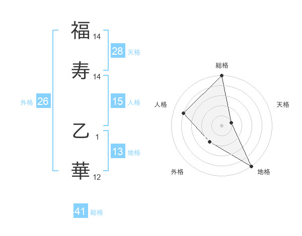 福寿 乙華さんの外格は26画の2点!