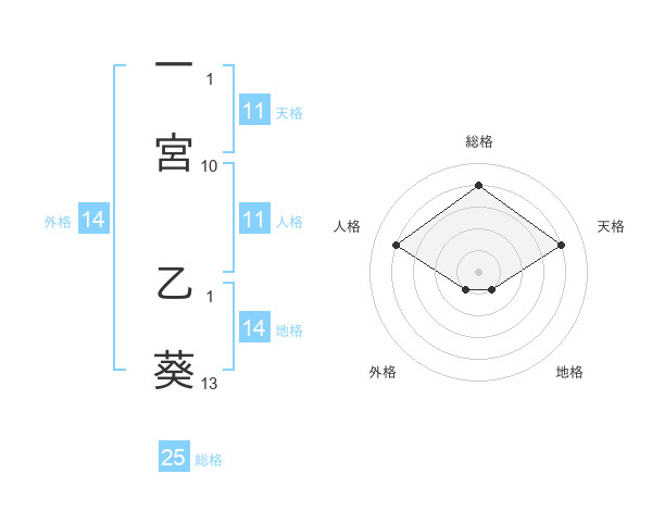 一宮 乙葵さんの総格は25画の4点