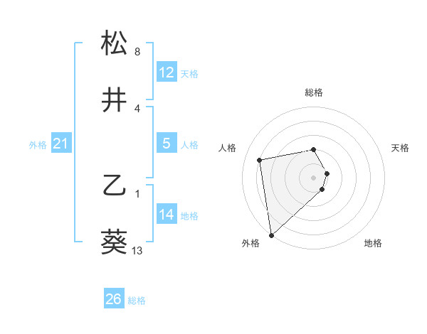 松井 乙葵さんを姓名の画数から五運を鑑定