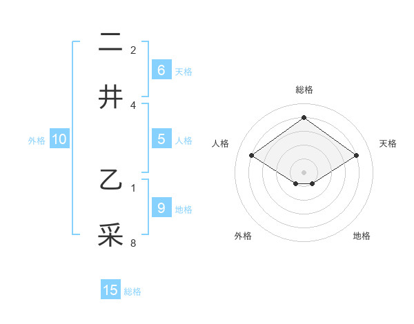 二井 乙采さんの総格は15画の4点!