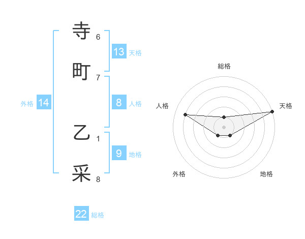 寺町 乙采さんの総格は22画の1点!