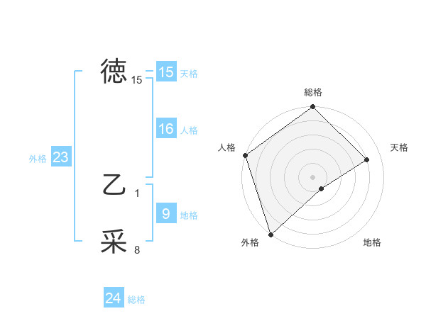 徳 乙采さんの外格は23画の5点!