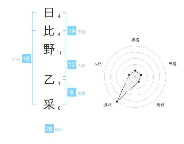 日比野 乙采さんの外格は16画の5点!