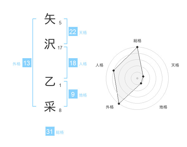 矢沢 乙采さんの総格は31画の5点