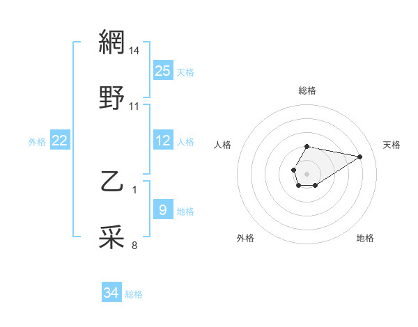 網野 乙采さんの天格は25画の4点!