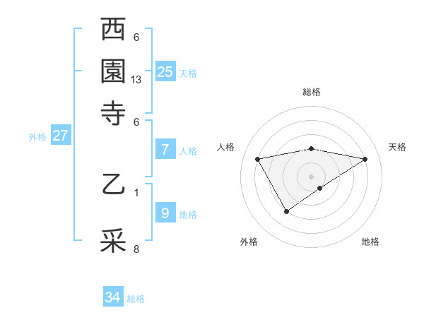 西園寺 乙采さんを姓名の画数から五運を鑑定