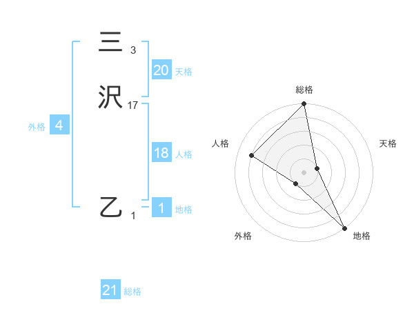 三沢 乙さんの天格は20画の1点!