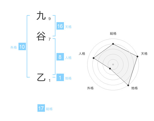 九谷 乙さんの天格は16画の5点!