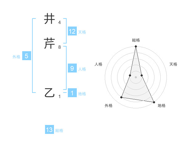 井芹 乙さんの総格は13画の5点!