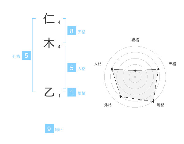 仁木 乙さんの天格は8画の4点!