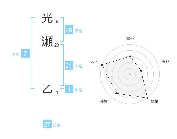 光瀬 乙さんの人格は21画の5点!