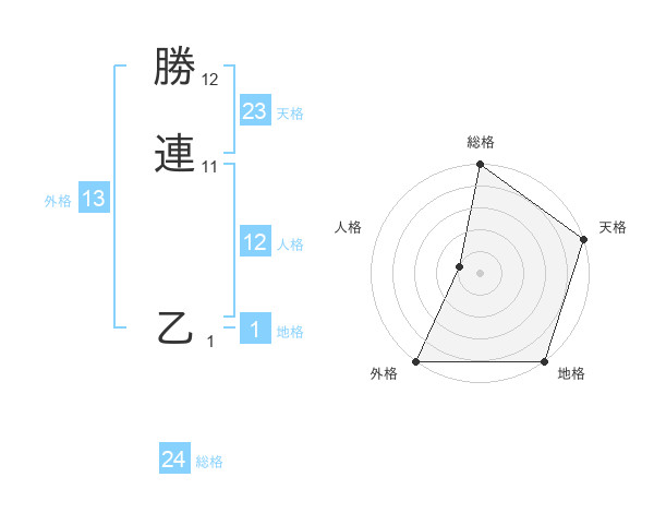 勝連 乙さんの外格は13画の5点!