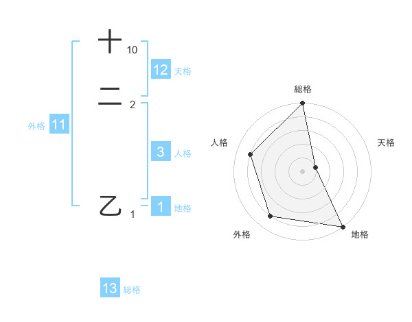 十二 乙さんの総格は13画の5点!