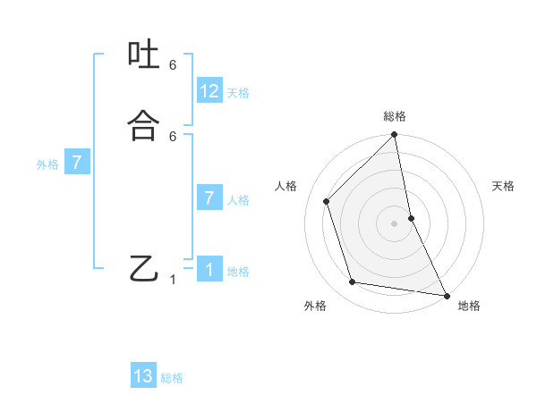 吐合 乙さんの総格は13画の5点!