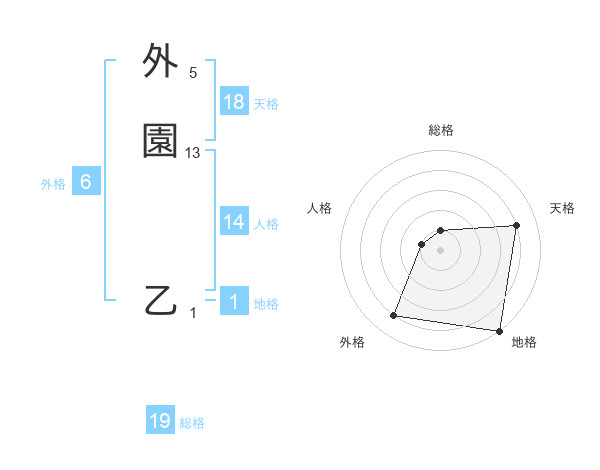 外園 乙さんの総格は19画の1点!