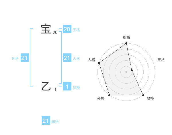 宝 乙さんの外格は21画の5点!