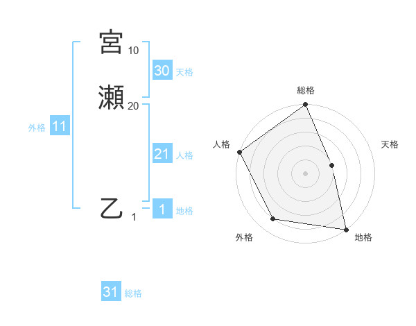 宮瀬 乙さんの天格は30画の2点!