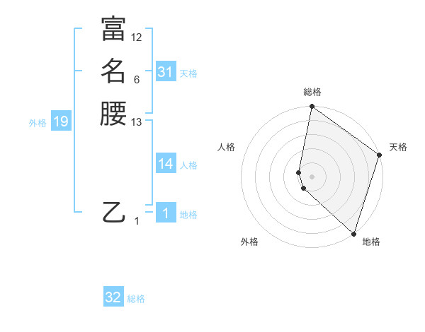 富名腰 乙さんを姓名の画数から五運を鑑定