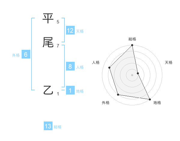 平尾 乙さんの総格は13画の5点!