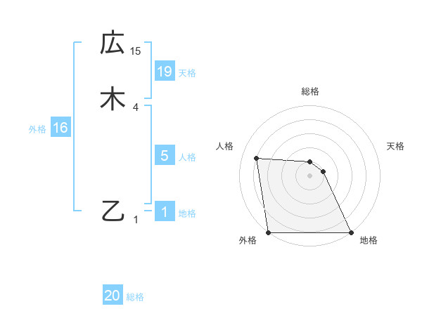 広木 乙さんの総格は20画の1点!