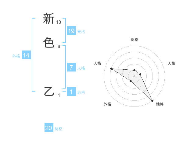 新色 乙さんの総格は20画の1点!