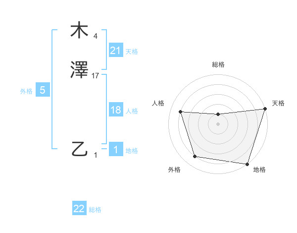 木澤 乙さんの天格は21画の5点!