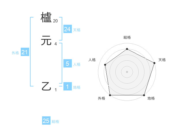櫨元 乙さんを姓名の画数から五運を鑑定