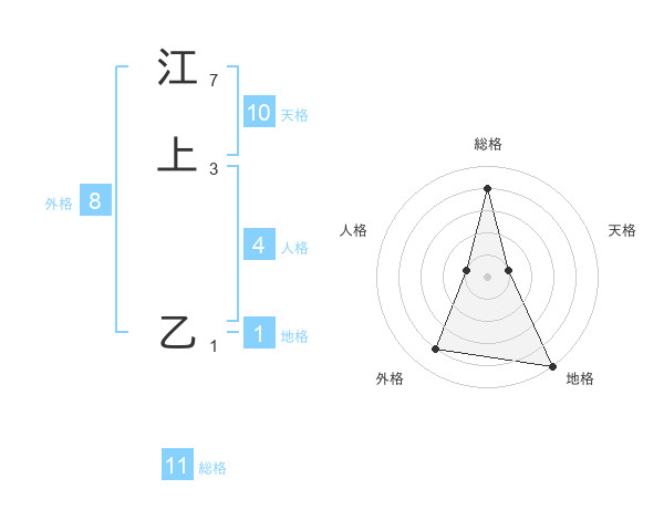 江上 乙さんの総格は11画の4点!