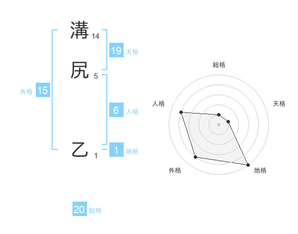 溝尻 乙さんの総格は20画の1点!