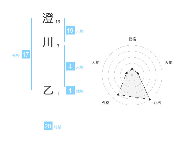 澄川 乙さんの総格は20画の1点!