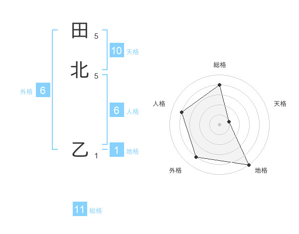 田北 乙さんの総格は11画の4点!