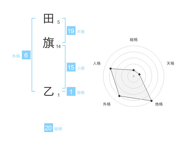 田旗 乙さんの総格は20画の1点!