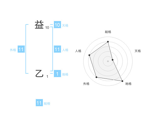 益 乙さんの総格は11画の4点!