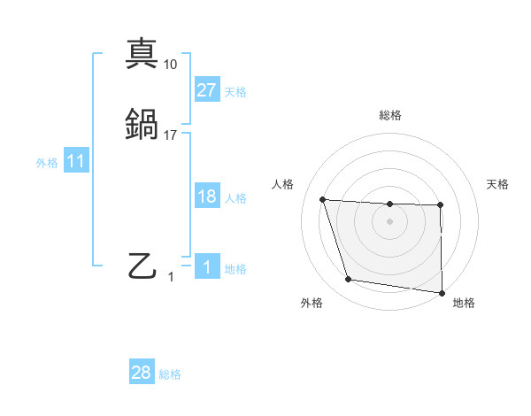 真鍋 乙さんを姓名の画数から五運を鑑定