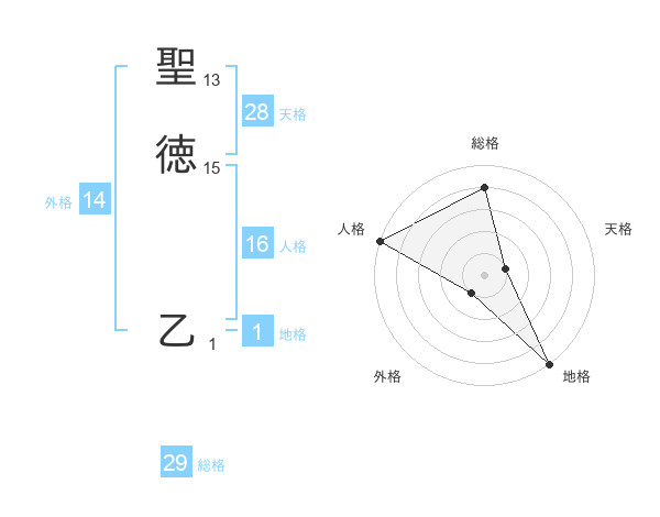 聖徳 乙さんの総格は29画の4点!