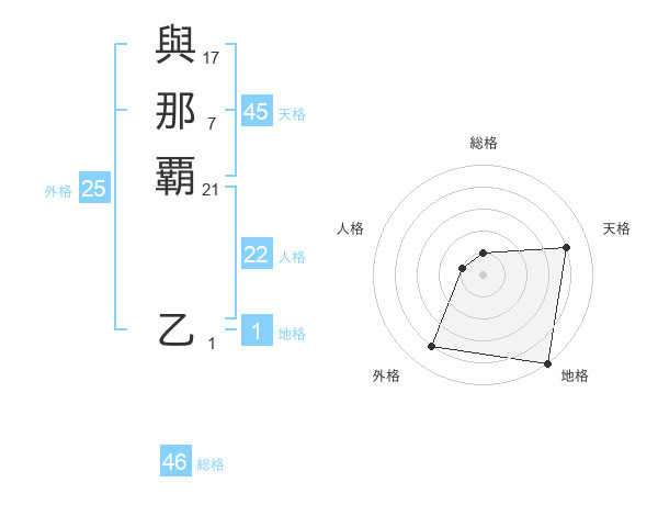與那覇 乙さんを姓名の画数から五運を鑑定