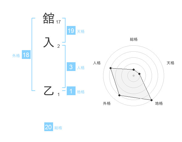 舘入 乙さんの総格は20画の1点!
