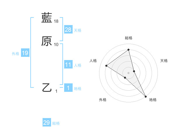 藍原 乙さんの総格は29画の4点!