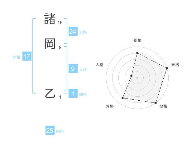 諸岡 乙さんを姓名の画数から五運を鑑定