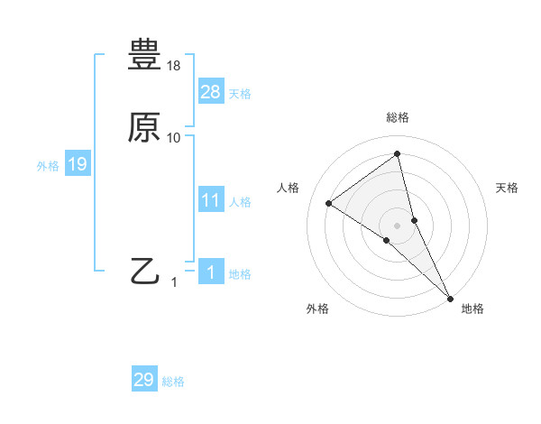 豊原 乙さんの総格は29画の4点!