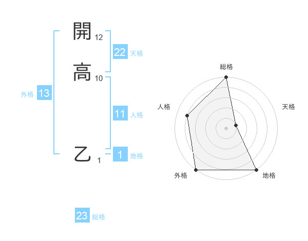 開高 乙さんの外格は13画の5点!