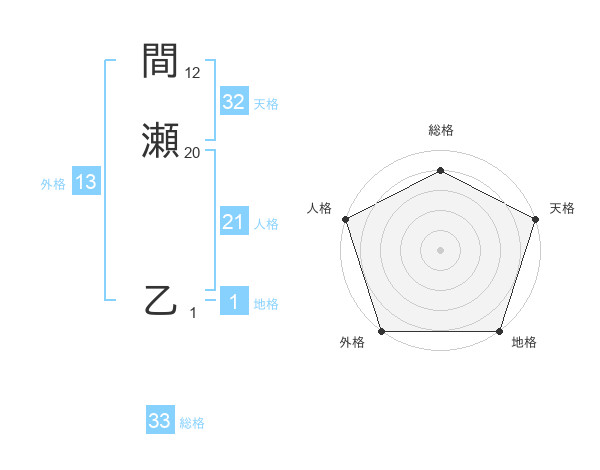 間瀬 乙さんの外格は13画の5点!