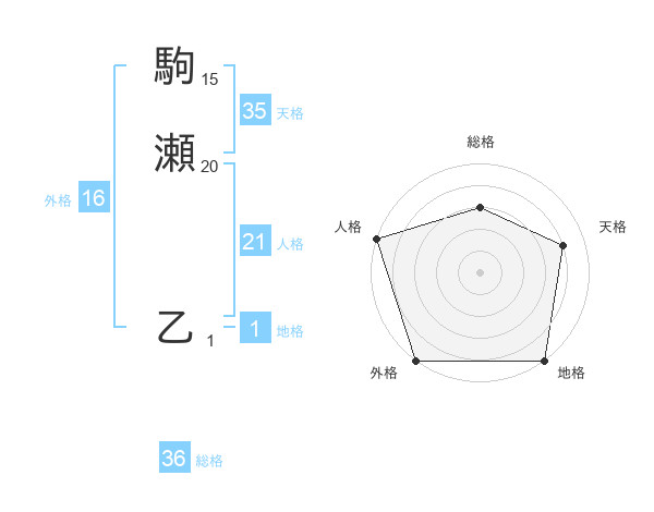 駒瀬 乙さんの外格は16画の5点!