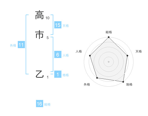 高市 乙さんの総格は16画の5点!