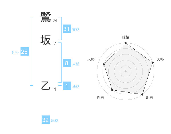 鷺坂 乙さんを姓名の画数から五運を鑑定