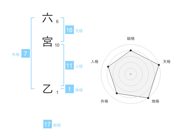 六宮 乙さんの総格は17画の4点!