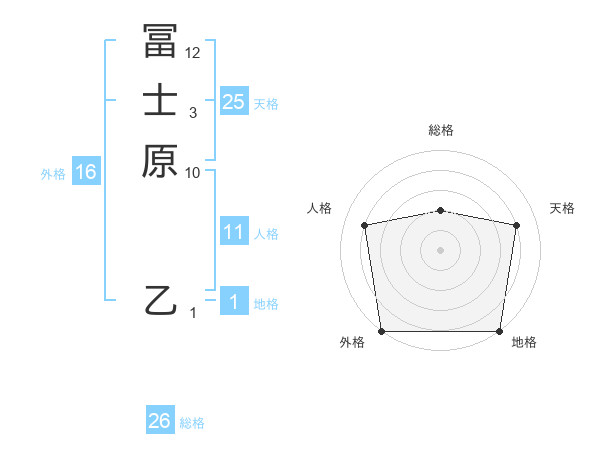 冨士原 乙さんを姓名の画数から五運を鑑定