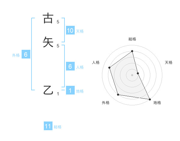 古矢 乙さんの総格は11画の4点!