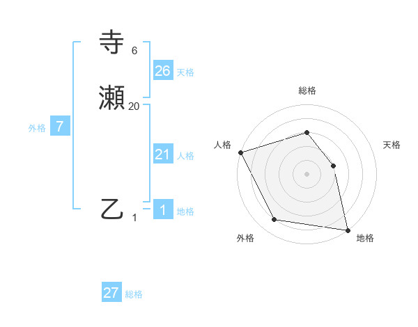 寺瀬 乙さんを姓名の画数から五運を鑑定