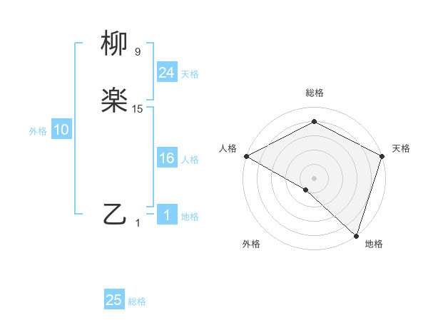 柳楽 乙さんの総格は25画の4点!